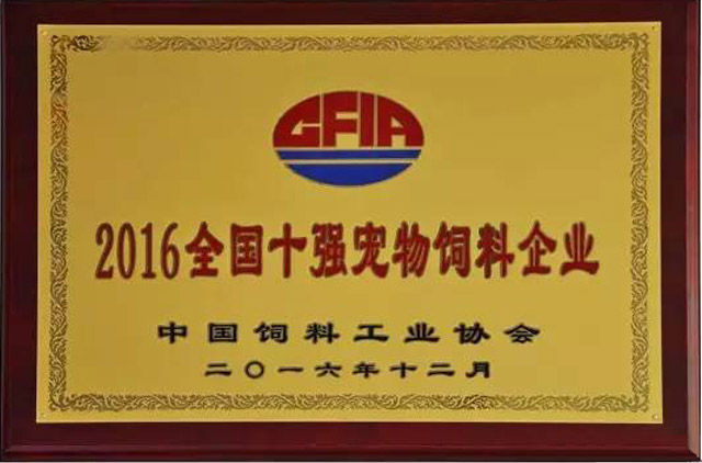 2016年12月9日,中國飼料工業(yè)協(xié)會第七次會員代表大會在北京召開,會議對2016年度中國飼料工業(yè)協(xié)會先進(jìn)集體及先進(jìn)工作者進(jìn)行了表彰, 華興公司榮獲“2016全國十強(qiáng)寵物飼料企業(yè)”稱號。